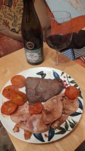 I’m sizzling a rump steak with bacon and tomatoes and on Sunday a slowcooked beef joint with sweet potato, peas, onion and broccoli 🥦